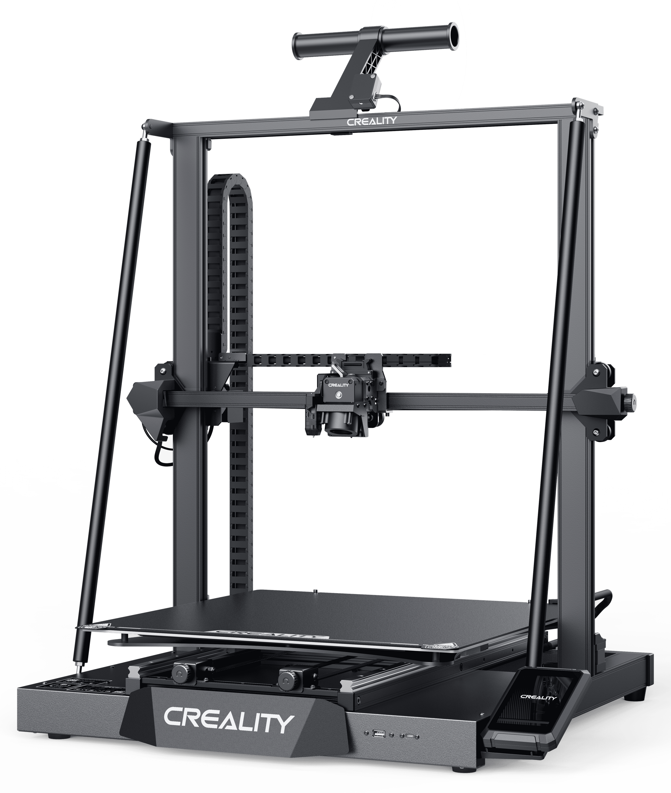 L’axe Z de la CR-M4, quant à lui, est renforcé par une structure en portique avec deux tiges de support formant un triangle rigide. Cette configuration offre une stabilisation accrue de l’ensemble de la structure et élimine le risque d’affaissement ou d’oscillations pendant l’impression. De plus, chaque axe Z dispose de son propre moteur, garantissant des mouvements fins et une qualité d’impression uniforme de la base jusqu’au sommet de l’objet. Ces caractéristiques font de la Creality CR-M4 une solution d’impression 3D exceptionnellement précise et fiable, adaptée à une large gamme d’applications.